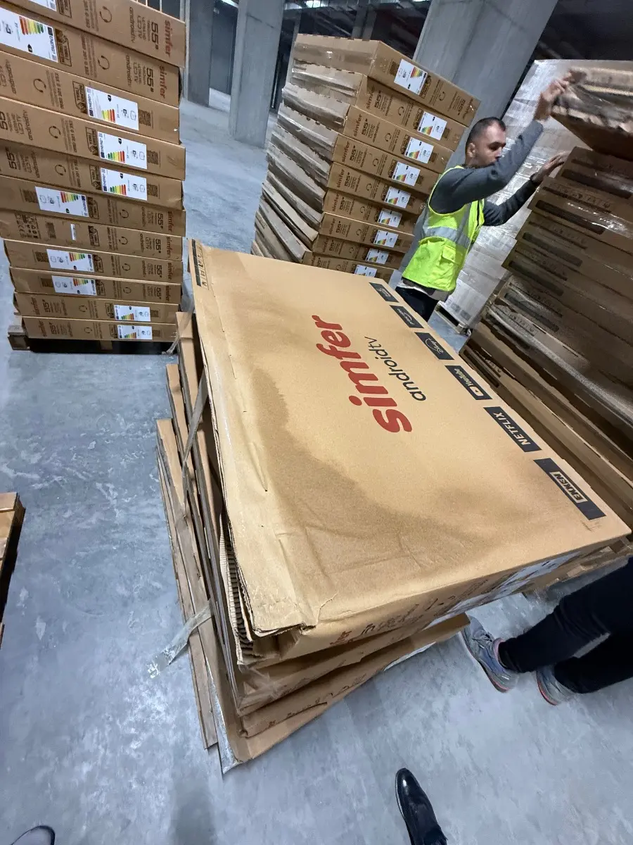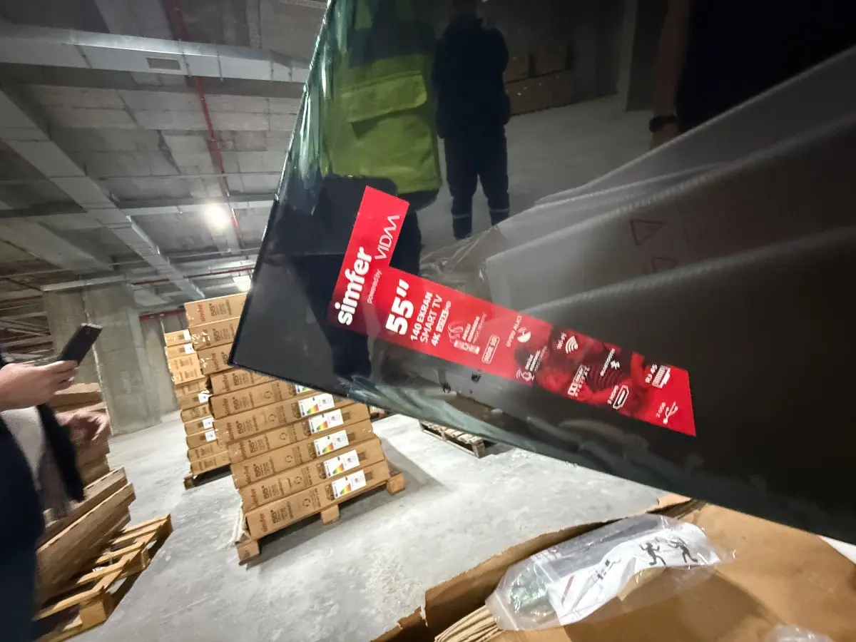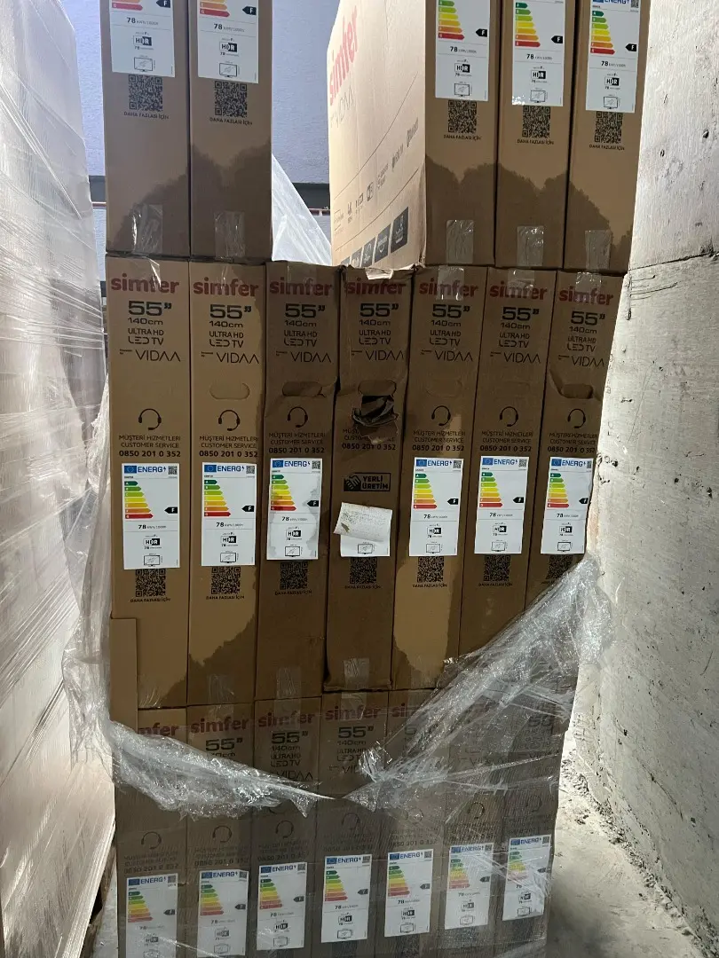 33 Bobin yaklaşık 13 ton kağıt ile 383 adet Simfer marka 55 inç televizyon hasarlıdır. Fotoğraflarda kutular görülmektedir. Tüm televizyonlar aynı marka ve modellerdir.