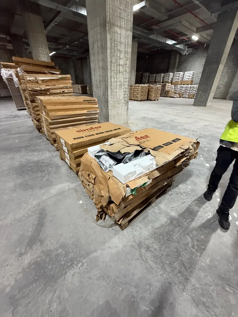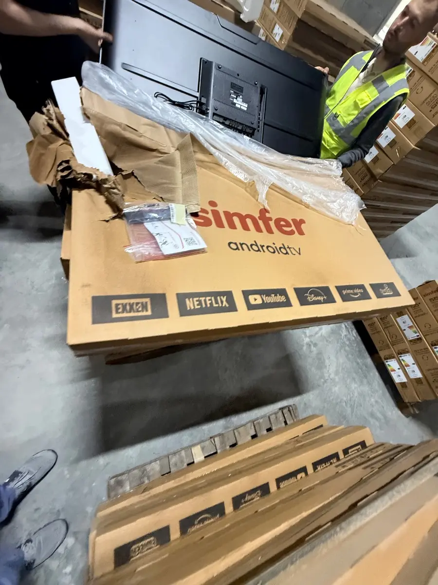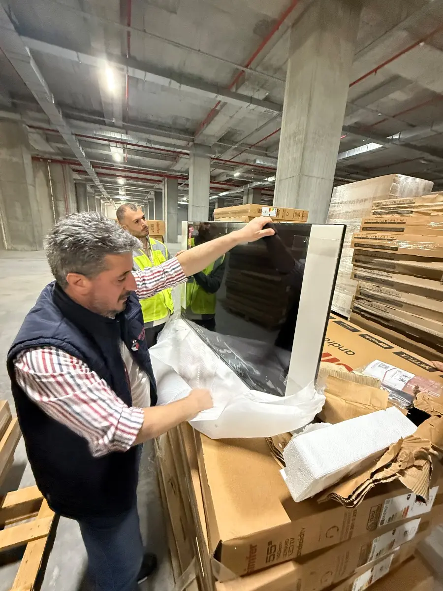 33 Bobin yaklaşık 13 ton kağıt ile 383 adet Simfer marka 55 inç televizyon hasarlıdır. Fotoğraflarda kutular görülmektedir. Tüm televizyonlar aynı marka ve modellerdir.